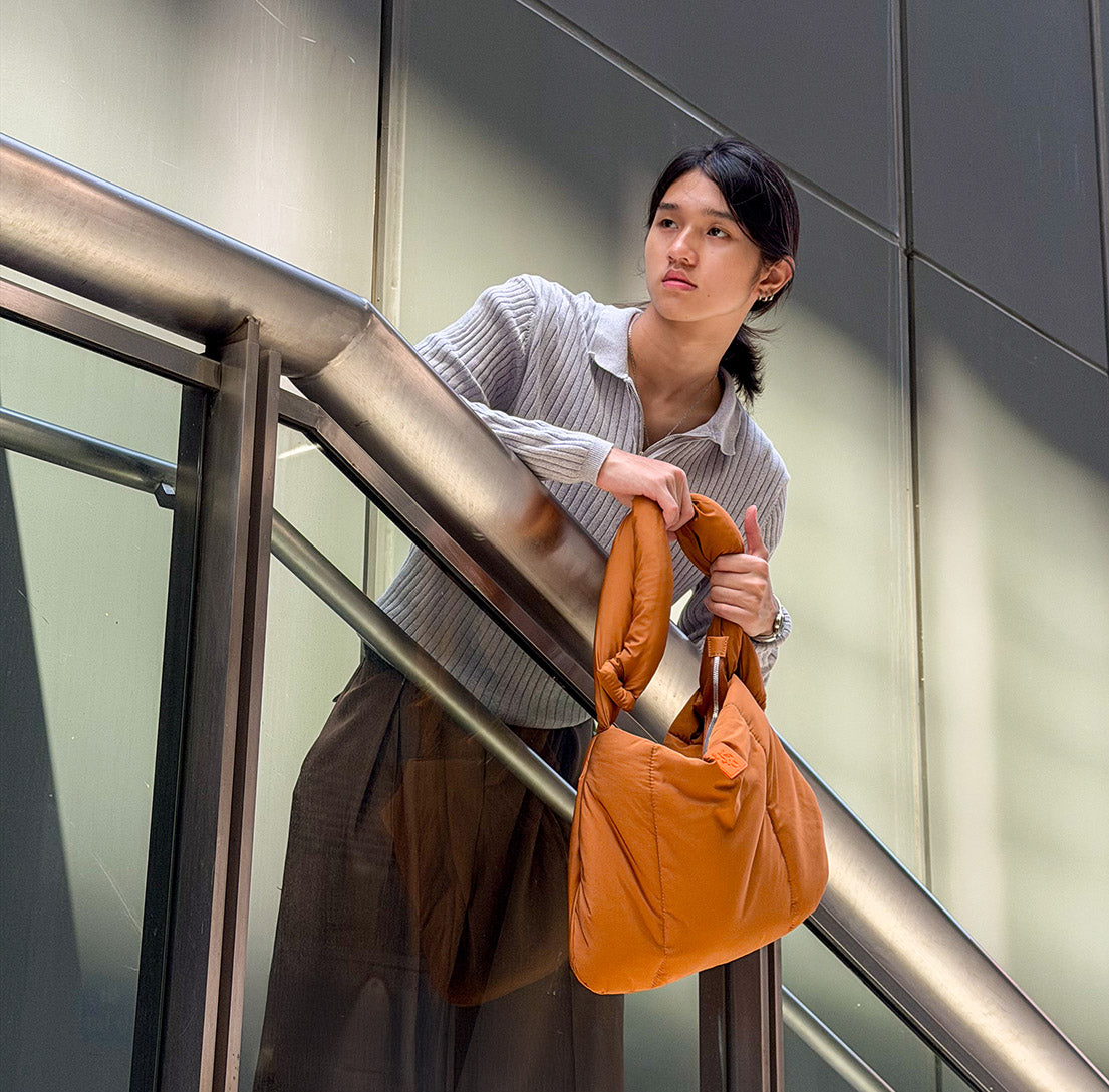 It is a bag that I can style with any outfit and still look great! The puffy bag feels really comfortable to wear and I can always turn it inside out when I want to… and most importantly, it is a unisex style so many of my female friends wanna get it too!